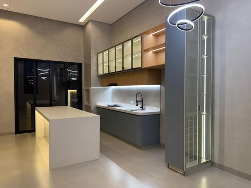 ✅ Cozinha Gourmet - Ilha e Bancada Quartzo Branco, Cooktop, Depurador e Cuba Gourmet