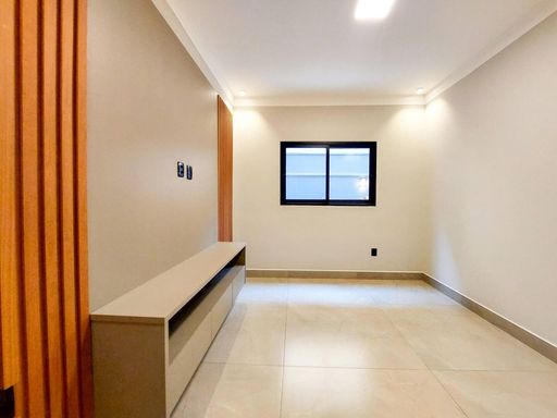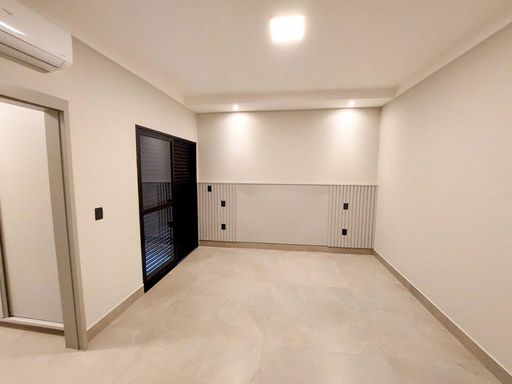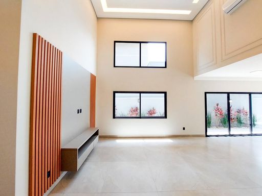 ▪️sala ampla, pé direito alto, rasgo em led e painel ripado