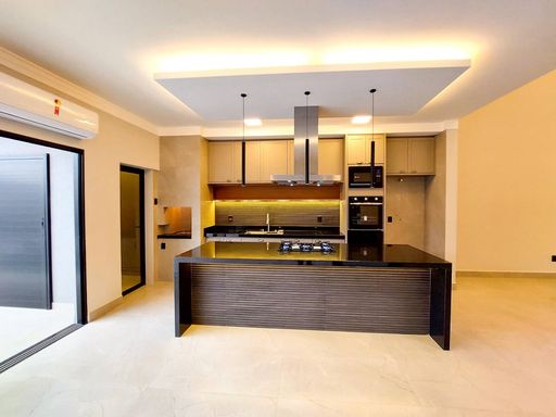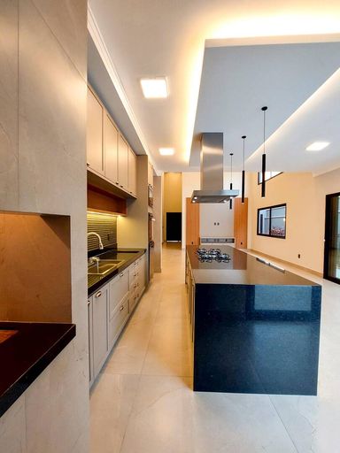 ▪️cozinha gourmet com bancada de granito, sanca , coifa, cooktop, lava louça, micro-ondas e forno elétrico