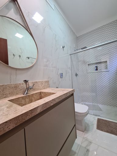 ✅3 suítes sendo uma SUÍTE com closet, banheiro com duas cubas e dois chuveiros