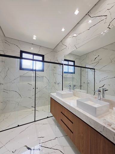 ⚜️03 suítes, sendo uma suíte com closet, banheiro com duas cubas e dois chuveiros