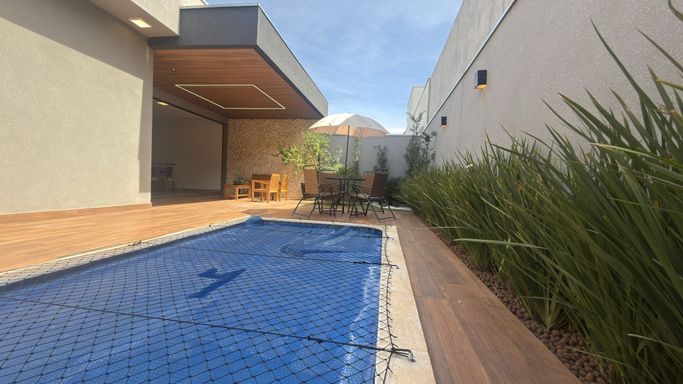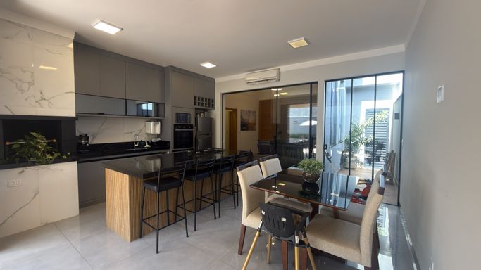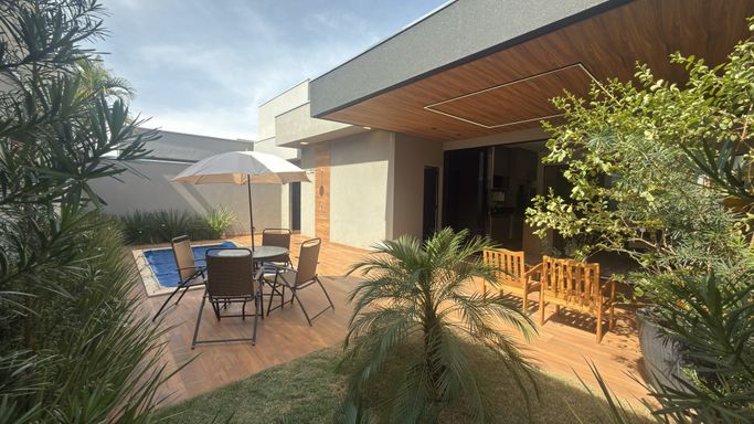 Lindo imóvel com fachada contemporânea e rico em móveis planejados e paisagismo .