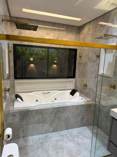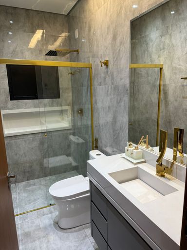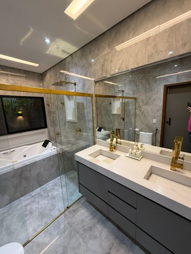 ⚜️São três quartos , sendo uma suíte com closet, cubas e chuveiros duplos e hidromassagem.