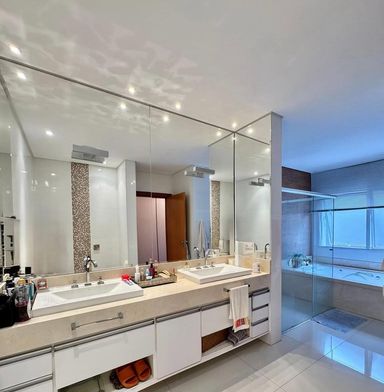 Acabamento finíssimo pastilhas de mármore da Ornamentare, loucas e torneiras rocca e deca,